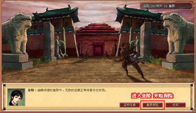 在洛阳的郊外,有一座幽静深邃的皇陵,皇陵中无数的宝藏正等待着你去发现。只要你带够红宝石和琥珀各5个,即可以开启皇陵的大门,开始探险旅程。
