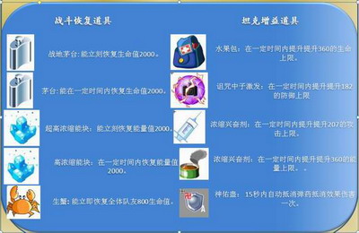 在这款游戏中,坦克在游戏内可以左右战局的道具为:战斗恢复道具、战斗前的增益状态道具、战斗地图中随机刷新的各种道具等。只要你能熟练使用这些道具,轻松玩转《梦幻坦克》不是梦。一起来看看这些影响到整场游戏胜负的重要法宝,看他们怎样在梦幻般的坦克世界中上演惊天大逆转?