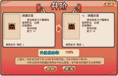 武将、兵器、技能,不再是一成不变,统统可以升阶。只要你够运气,最豪华阵容说不定就是你的呢!