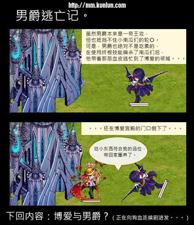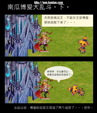 怎样?剧情确实很“狗血”吧!不过作者对南瓜王、男爵,以及博爱君的性格刻画,还是非常到位,可见确实对他们很有爱哈!~~~有兴趣的话,大家不妨都加入到YY大军当中来吧,发挥天马行空的想象力,说不定你也可以编纂出很好看、很好玩儿的MM同人故事哦!