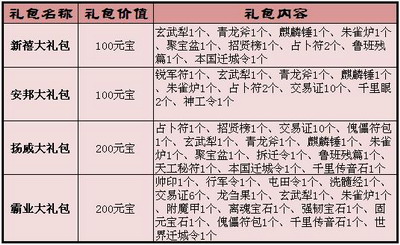 凡是登陆战国风云的玩家,只需点击“战国公告”上的“领取礼包”按钮,即可获得价值180玉的豪华礼包一个,内含神工令,招贤榜,交易证,鲁班残典,锦囊,天工秘符等最佳道具,打造每个君主梦寐以求的超级组合。活动期间,每个ID限领一次。