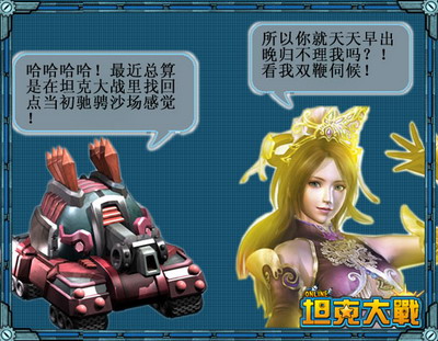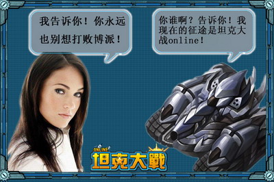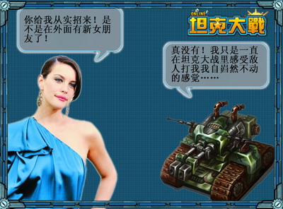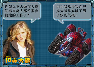 《坦克大战online》里动漫界的明星大腕可不少!什么火影、威震天、蜘蛛侠、绿巨人……东西合璧应有尽有!不过,如果他们在坦克里遇上了和自己有关的女星,会有什么有趣的对话呢?