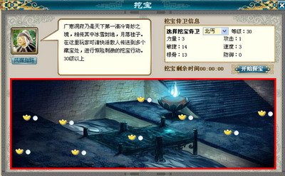 《功夫OnWeb》不但提供给玩家升级PK的机会,也给玩家提供极为有趣的探宝的机会。在游戏中,玩家可以在任何一个主城找到挖宝NPC,选择一个充满荆棘和奇遇的地图进行挖宝。不同的地图,难度不一样,当然获得的奖励也不相同。