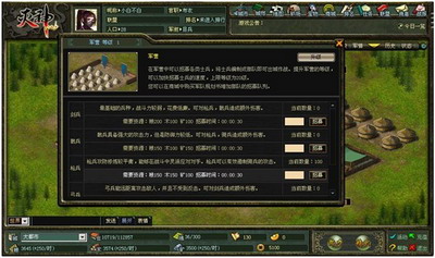 一个成功将领的麾下必然有骁勇善战的士兵。点击军营建筑,可以看见五种士兵,每种士兵都有自己的优势,兵种之间是相生相克的,可以在列表中查看。输入招募数量,点击招募即可。
