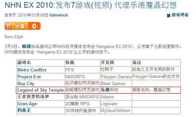 3月5日,在韩国知名游戏公司NHN召开的"Hangame EX 2010"媒体发布会上,公开了旗下七款运营新作,其中来自老牌网页游戏公司杭州乐港的《魔晶幻想》赫然在列!