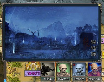 点击游戏界面右下角的“场景地图”,来到“东胜神州”的全景地图,看到一个叫“枯树冢”的地方,进去就可以打怪完成任务