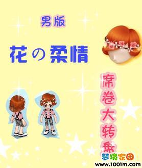 上周的大转盘,我们看到的是一款具有夏威夷风格,戴着草编花环的头发—花の柔情(女),得到许多梦儿的喜爱,目前的市价已经达到3000券。这款头饰可以让梦儿们搭配衣服起来看上去更加轻盈、可爱。本周六要上线的大转盘奖品是男生们一直希望的情侣头发:男版花の柔情-“花の风情”,与花の柔情没有什么区别,颜色和样式上也是相同的。