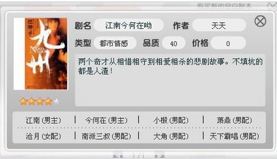 无论是简介还是海报,都与原著相符,但却是只有极低的9品质。品质将影响剧本拍出来后的利润。品质越高,才能获得越多的回报。这样的巧合,让玩家们纷纷调侃,不填坑的作者就是被调侃的命,连系统都如此认为,所以才能获得高品质。甚至有玩家宣扬:“信吐槽,得利润”,“扁江南,系统给你做靠山”。一时之间在游戏里掀起了一股讨伐热。