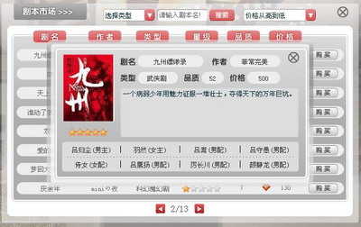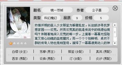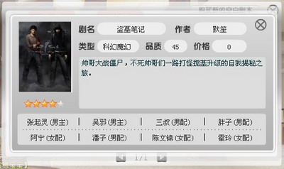 在这其中,网络小说占有绝对的优势,穿越文,奇幻文,武侠文,都被搬上了《星客志愿》的大屏幕开演。由于游戏中女性玩家比例高,备受宅男宅女欢迎的九州系列和盗墓笔记,庆余年等频频出现在剧本市场,简介中各种吐槽不说,还有玩家在简介中向作者催坑。