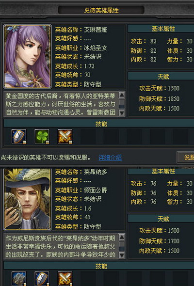 知己知彼,方可百战不殆。在黄金大陆上领军作战,除了要有好的英雄外,善于取各个英雄的长处也是非常重要的。攻击型与防御型的英雄分工是完全不同的,一般攻击型的带攻击,防御型的带防御。而且其中还是要看种族之间的调配,这个就要看各大英雄的基础属性了,根据自己所需属性不同而进行选择。