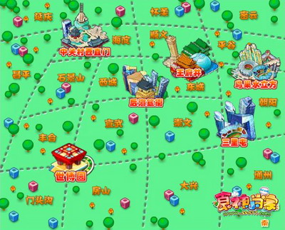 游戏内,北京实景地图同现实般如出一辙的按照北京现有16区2县作了实际划分, 建国门外大街以北、东大桥路以东、西大望路以西、朝阳路以南等CBD核心区域尽皆标刻。鸟巢、天安门等北京地标也全然展现。玩家们在此北京地图上漫步游览,会感觉无异于真的穿梭在北京的大街小巷之中。