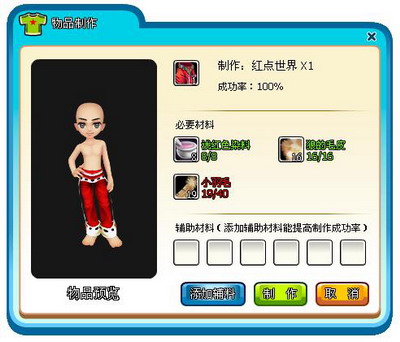 越高级的服装,相关的制作的难度越高,成功率较低,如果想提高成功率,可以通过添加辅助材料哦~辅助材料有《秘籍:再接再厉》、《秘籍:成功之母》、《秘籍:大成功之母》,这些都是可以提高相关成功率,下面看看添加辅料的界面吧~