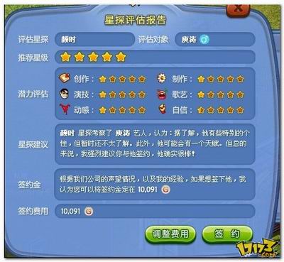 游戏中还提供了以显示为模板各具特色的高品质艺人。玩家可通过在公共区域内的资源中心里打探情报,打探超级明星出现的城市。当星探在该城市探索时有可能探索到当前在这个城市的超级明星,星探的人脉越高,探索到超级明星的几率越大。
