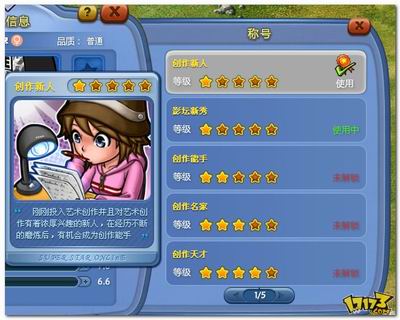当艺人的某项属性达到一定值的时候,将获得对应的称号,不仅使艺人的名称与众不同,而且是对艺人明星生涯的认可。