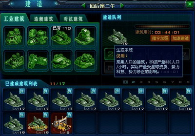 “虽然我也知道人很重要,但是我认为我目前比较急缺的是钛矿和氦3,所以我打算把模拟生态系统换成前两种工厂,你觉得呢?”恩,很有想法!那么就像以往一样,在图中右侧的已完成的建筑列表中,找到你要拆除的模拟生态系统,点击它右上角的拆按钮来开展你的改造计划吧!