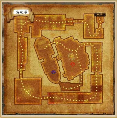 若问数十年学艺为何,今日便是大展本事之日。玩家朋友在接取任务之后,即可传送进入海蛟帮地图,随后只需跟着小地图上的线路指示一路杀过去即可。这张地图使用的是回型的构造,玩家从外向里,从远向近,步步为营向最终的BOSS推进。地图**有四种怪,其中两种为喽啰、一个为小BOSS,为地图上红圈,还有一个则是最终的BOSS,海蛟帮帮主,为地图上蓝圈。