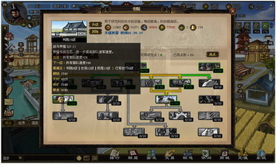 在玩家的科技发展当中,《楚汉》摒弃了传统的时间升级制,玩家在升级科技时,不需要另外再消耗时间来进行研究,而是通过魔兽天赋式系统的方式来对科技进行研发和加强。玩家每次升级或者研究科技时,需要玩家角色每次升级所获得的“科技点”,对每个科技“加点”即可