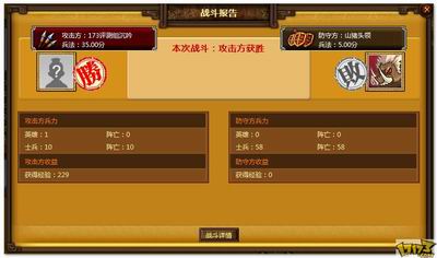 在战斗报告的战斗详情中可以看到详细战斗情况,以便分析成败原因,日后取得更多的胜利。