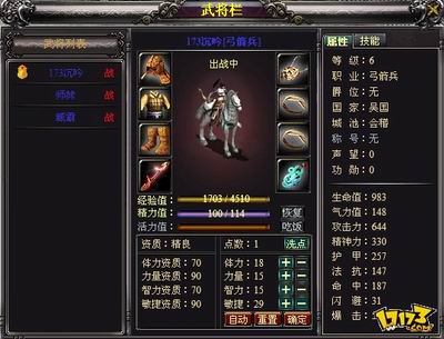 武将的属性分为资质、基本属性、战斗属性三大类。武将的资质决定了武将属性的成长度,武将每升一级可以获得一定点数的基本属性点,可以自由加在四个基本属性上,将属性点加在这个属性上的话可以获得比其他职业更多的战斗属性提升。武将的战斗属性直接决定了武将在战场中的战斗力。
