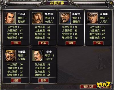 游戏中包括玩家在内的武将必须选择一种职业,或者说兵种,共有轻装兵、重锤兵、大刀兵、长枪兵、弓箭兵、火炮兵、风水士和仙术士八种职业,各种兵种的特点和能力不同。例如小编的弓箭兵是个远程兵种,攻击力高,暴击闪避高,但防御力很弱。