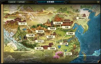玩家在场景中点击出地图可查看当前场景缩略以及场景间关联。点击其中的区域,将显示本区域的场景和联通关系。