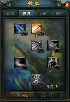 当玩家达到10级的时候,将激活修为系统,当把修为点投放到修为树中,将强化所学技能的能力。同样,修为也分为两系,与技能相对应。