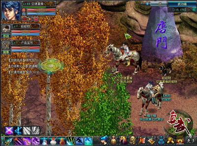 养马系统:为玩家提供获得战马的一种方式,玩家可以在渭州西郊NPC“养马人”处习得养马大法,给各种战马喂食马粮,提高战马对你的亲密度,从而获得各种绝世好马,之外战马还可以通过做任务、商城购买得到。
