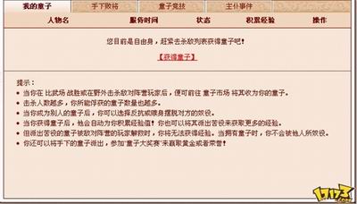 玩家在击败敌对阵营的角色后,可以将其抓到手下,把他当做童子一样奴役,抓到你手下的童子会提供经验值,还可以把手下的童子派出参加每天一次的童子竞技。