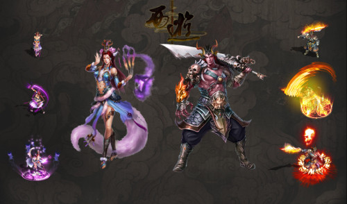 《西游》以游戏主人公穿越至唐朝为故事主线,并以古典名着《西游记》为故事背景.游戏共分为人、仙、 魔、鬼四大种族,同时,尽管该产品为回合制,但是画面没有使用回合制常用的Q版风格,而是采用写实风格 --场景3D建模加2D渲染.