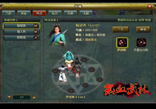 从进入《热血武林》开始,每一位玩家就会拥有属于自己的门派,门派中有各项设施可以让玩家进行升级。从最开始的基础建筑议事殿、弟子堂、商铺,到中期和后期的高等建筑藏经阁、客栈、铸剑阁。可以说每一项设施都是玩家不可忽视的部分,而且如果只是专注于某一个来进行升级的话将会对之后的游戏进程造成不好的影响。 在《热血武林》中,玩家需要扮演的并不是某一位武林英雄,而是需要作为一位掌门而率领着武林中的江湖豪杰们进行征战。玩家麾下的英雄们属性与特点各不相同,因此放置在战斗阵型中的不同位置也会有不同的效果发挥出来。而阵型方面,《热血武林》共为玩家提供给了八种战斗阵型,每种阵型都有独特的加成。玩家需要在阵型中安排肉盾、攻击输出、控制、治疗等角色,以发挥团队的最大实力。