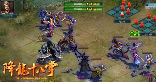 《降龙十八掌》战阵系统,主要是以九宫格的方式排列,每个阵法最多有5个阵眼,每个阵法的针眼位置不同,所附加的属性加成也各不相同。玩家可根据战斗需求,安排英雄所站的阵位,阵位不同,战斗过程中所带来的效果也不同,能否根据自己的情况选择最合适的阵法,十分考验玩家的智慧。在《降龙十八掌》的战斗中,如何灵活运用阵法,是赢得胜负的关键。由于每个种族特长不一,因而配合阵法中的特殊效果。《降龙十八掌》之中,还融入了成就星级评判体系,无论是玄界副本通关还是与玩家间的PK互动,每场战斗所花费时间以及受到伤害,将影响最终的战斗星级评分。而在玄界副本通关过程中,若所有小关卡都达成完美三星通关评价,更将获得额外的特殊奖励。当然,想要获得完美评价,不仅需要实力,更是对玩家智慧的极大考验。