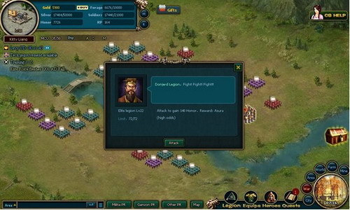 玩家们可以选择自己喜欢的角色然后进行升级培养,另外每个城市都会有一个基本营地建设各种房屋,训练战斗兵等等,最后还可以选择侵占其它国家城市领土.游戏采用了3D引擎技术开发,以回合制进行战斗,战斗画面很像战棋策略类游戏.