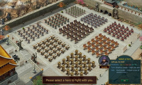 《Dynasty Chronicles》 中的英雄分为文官和武将.很显然,武将要在战场上去取得荣誉,而文官的任务就 是管理城中的日常大小事务,帮助玩家成为一名强有力的领导者.除了招募英雄外,玩家还可以通过训练, 道具,或派遣英雄到周边的乡村完成特定任务来提升英雄的等级.当你的英雄足够强大了,你还可以让他们 与其他玩家的英雄进行竞赛,看看谁才是最出色的.