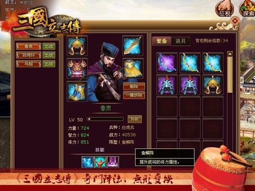 在《三国立志传》中, 骑兵统帅鲁肃就被赋予了鱼鳞阵,以迅雷不及掩耳地扼杀对方箭阵,清剿敌人弓兵,“东吴第一谋士”运筹帷幄体现的淋漓尽致,得此将怎愁不平定天下!