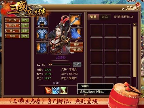 《三国立志传》中,弓兵吕绮玲则把鸳鸯阵运用到极致,阵型可以尽情发挥各个兵种的优势,如能坚守下去,必能遇佛杀佛、遇魔杀魔。